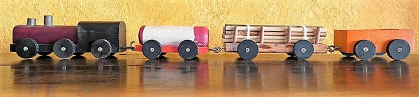| fabriqué par Georges Henry Piard des Crozets (39) avec le stock de bois de l'usine Vincent au barrage de Cuttura. | PETIT TRAIN EN BOIS... |