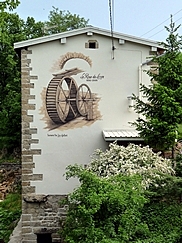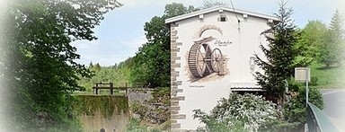 | ![]() réalisée par Blanc Publicité, Saint-Claude (39) avec la participation de T. Voulot, Saint-Lupicin (39) pour la peinture de la façade. |