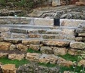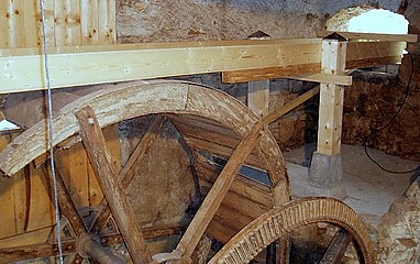 | C'est à l'aide d'un cheval que ces énormes blocs de pierre seront remontés. |