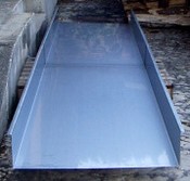 | pose des dés de béton (875 Kg) pour supporter le chenal | DIMENSIONS DU CHENAL 6 m de long, 0,85 m de large et 0,20 m de haut supporté par 2 poutres de 0,20 m de large |